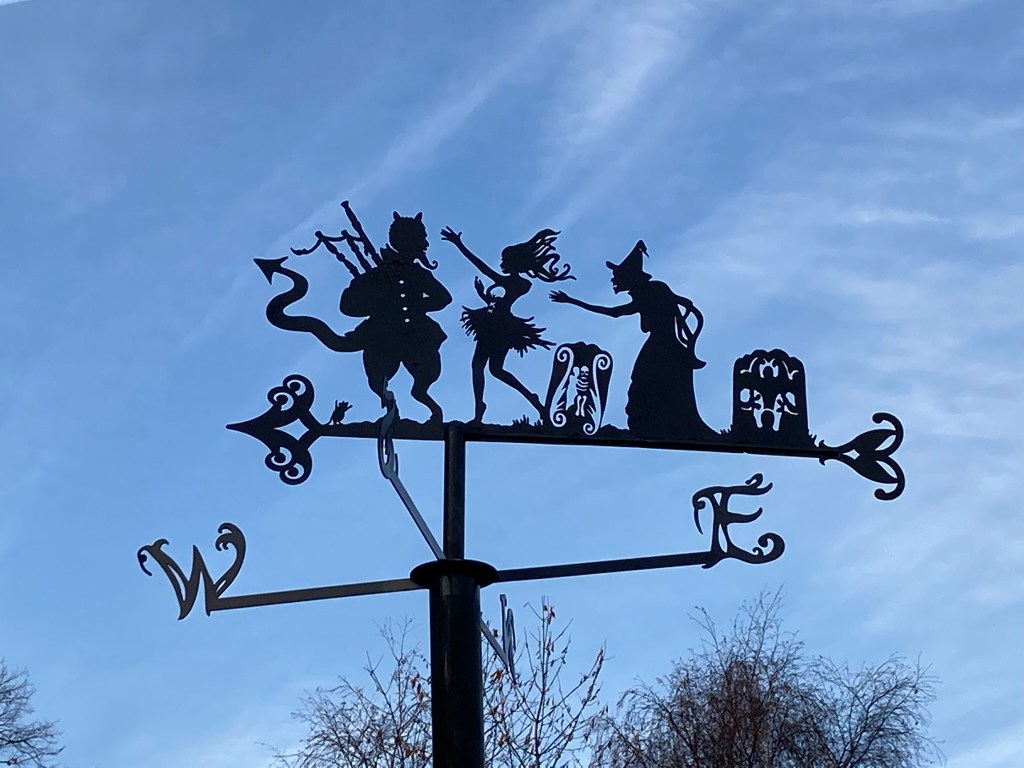 We were very happy to donate £2,000 towards the restoration of the Poet’s Path weathervanes which tell the story of Tam O’ Shanter. Here are some photographs illustrating how wonderful they look now.